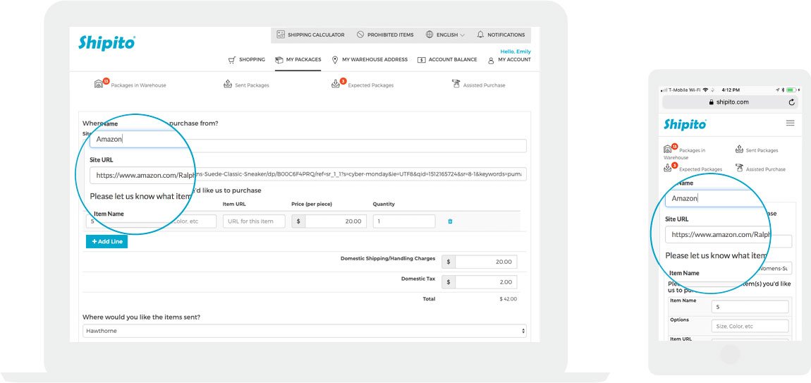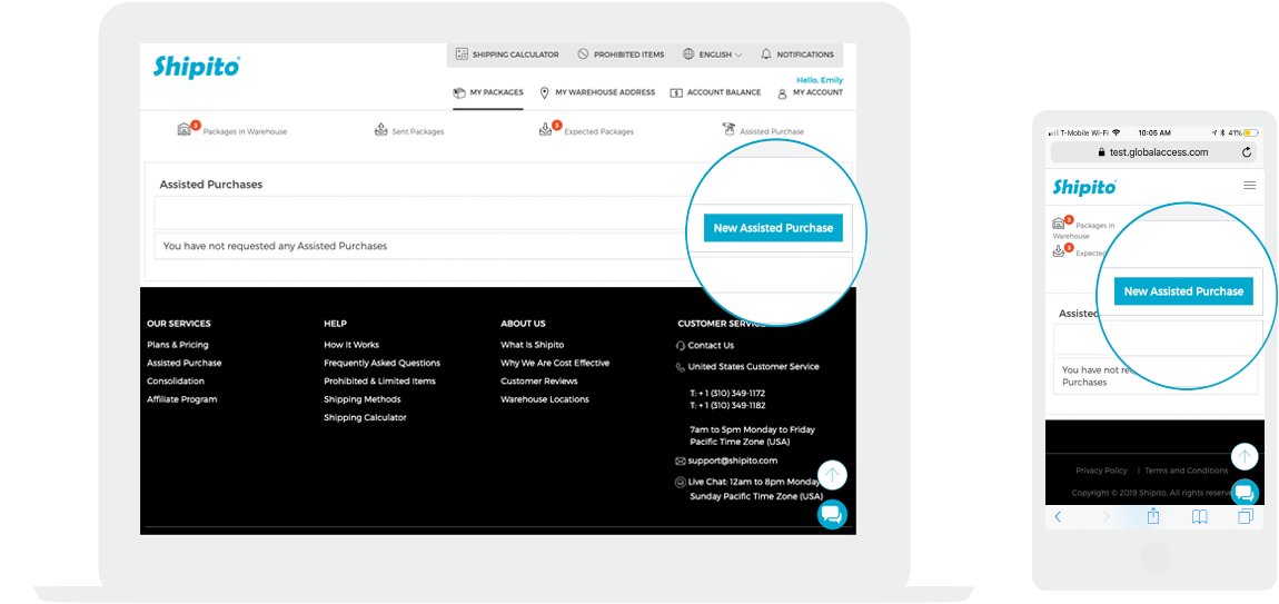 Once your Assisted Purchase arrives, you will receive a notification that it has been added to your suite. Then you can log in, fill out your customs form, choose your method of shipping, pay for the shipping and any applicable fees. You package will soon be on its way to your home.
