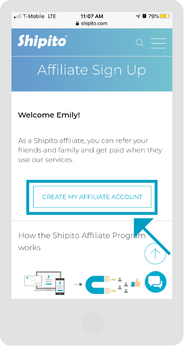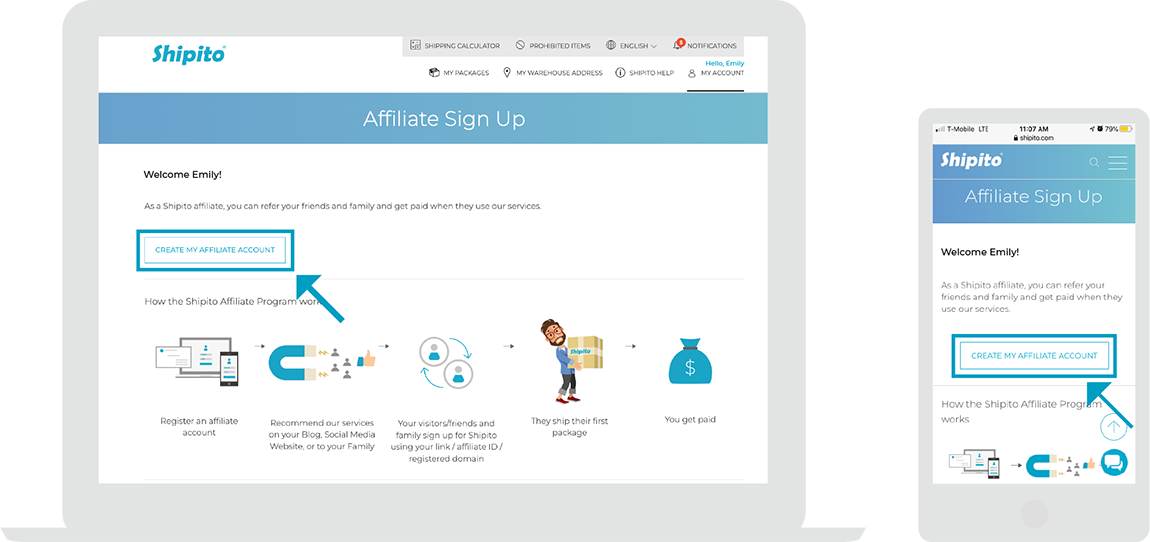 Login in to your Shipito account, and go to My Account/ My Affiliate Account/ Affiliate Sign Up to create my affiliate account.